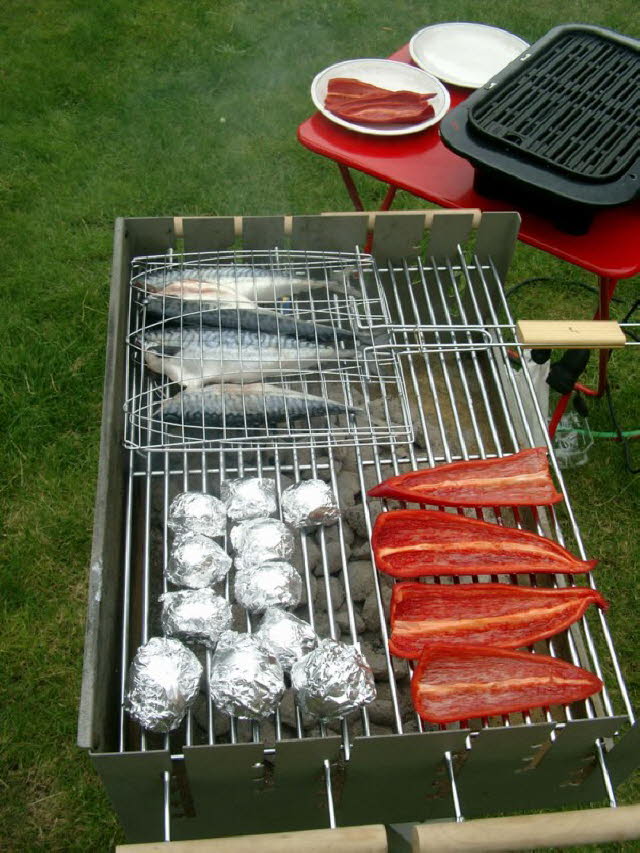 Außer Fleisch, Würstchen und Gemüse wurden sogar Makrelen gegrillt.