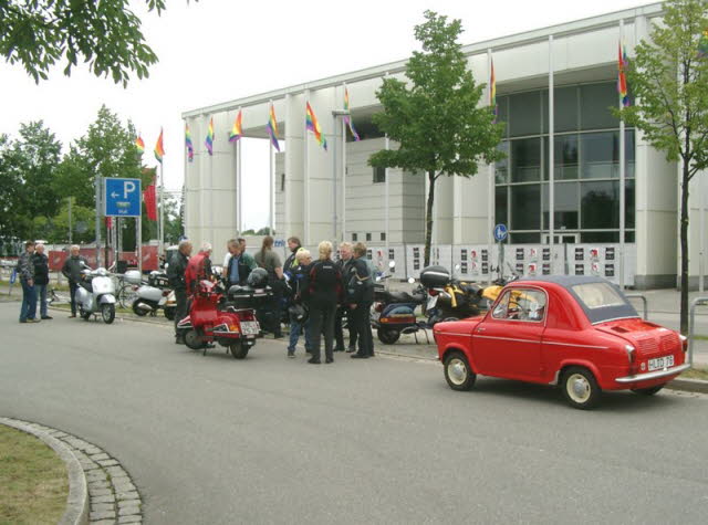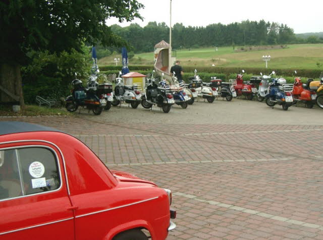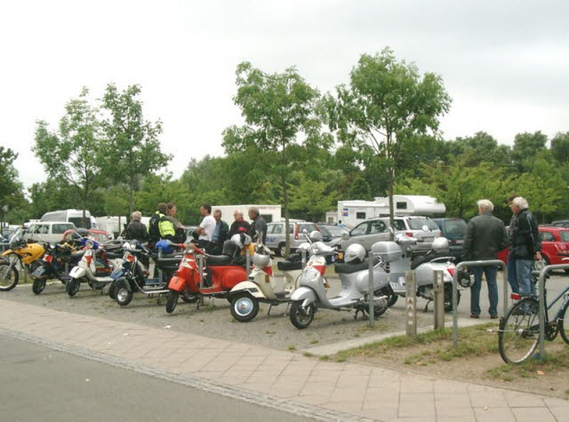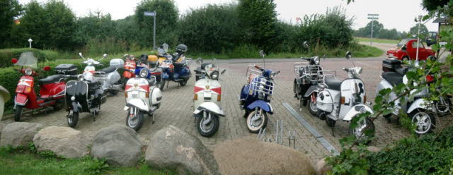 Wir starteten bei bestem Rollerwetter mit 9 Vespas und Dieters Vespa 400 (von Eckhardt
