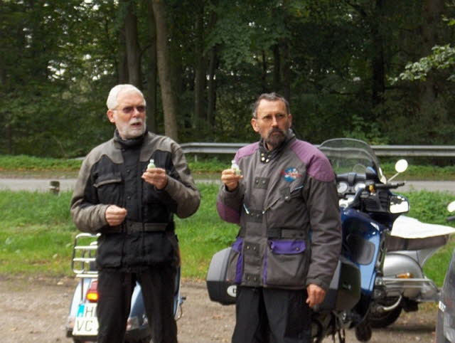 Wir waren leider nur 4 Vespas mit 6 Personen und 2 Motorräder sowie 1 Pkw.