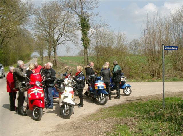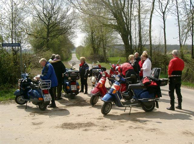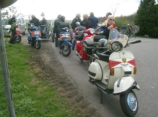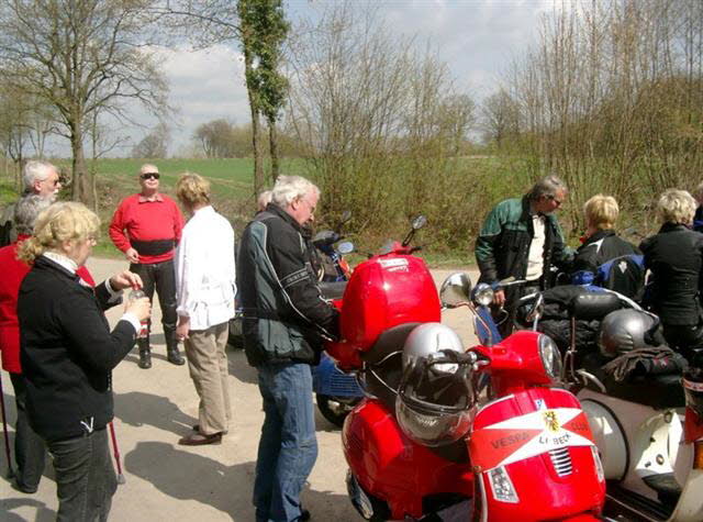 Am Sonntag, den 17.April trafen sich 13 Personen mit 7 Vespas, ein BMW-Gespann und