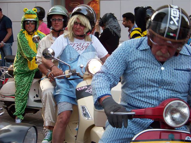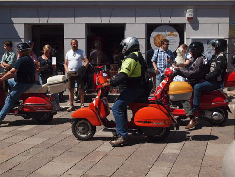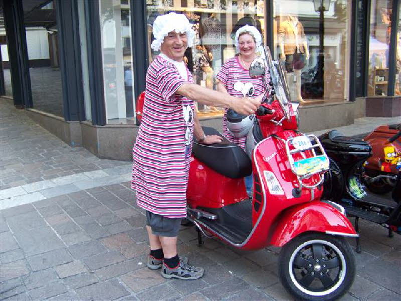Fazit: Ein super Treffen von ca. 1300 Vespistis aus vielen Ländern. Tolle Organisation und auch das Wetter hat mitgespielt. Die Fußgängerzone war voll von Vespas und Fußgänger ohne Roller fühlten sich wahrscheinlich fehl am Platz.