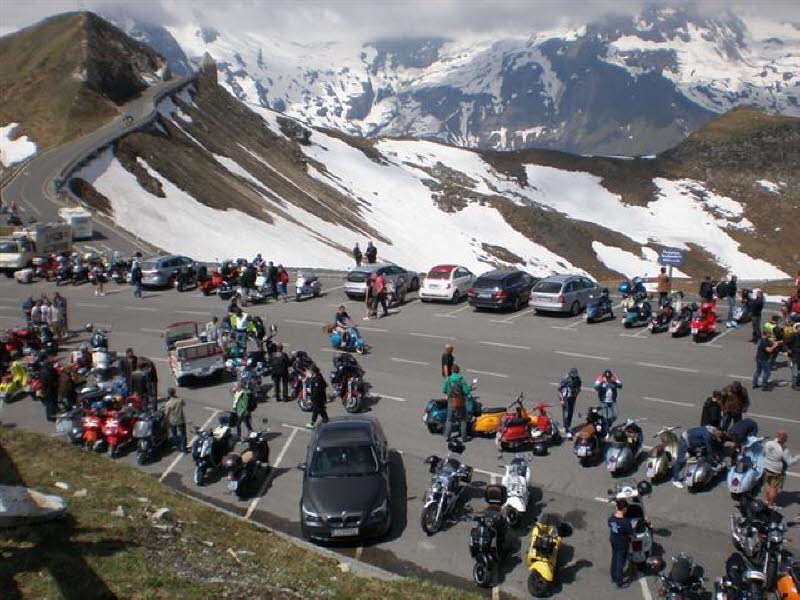 Die Attraktion der Vespa Alp Days stand am Samstag auf dem Plan: Die große Ausfahrt auf der Großglockner Hochalpenstraße. Bei herrlichem Wetter machten sich über 1000 Vespas auf den Weg. Am Zielpunkt wartete die Gulaschkanone auf uns. Am Abend fand die Tombola-Verlosung statt. Bei der Hälfte der Veranstaltung brach ein heftiges Unwetter mit Blitz, Donner und Hagel über das Tal herein.