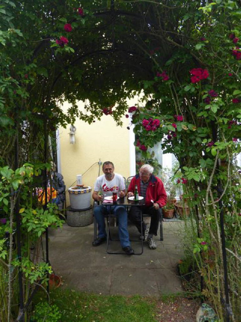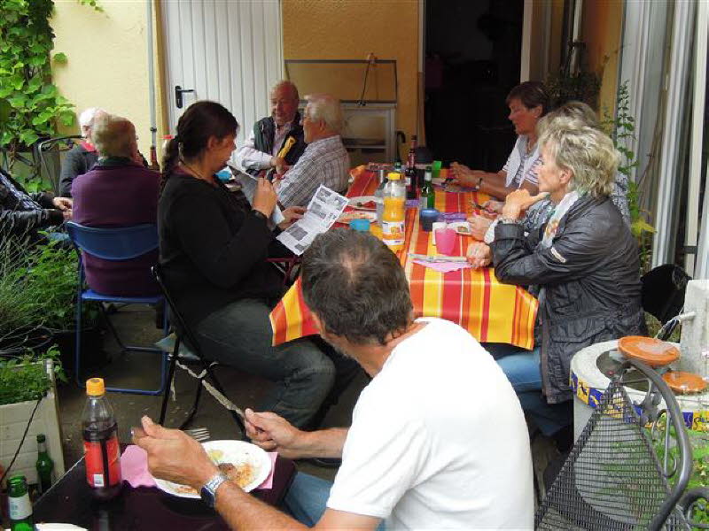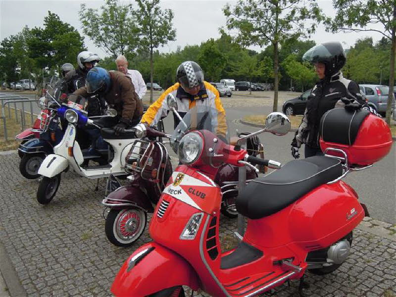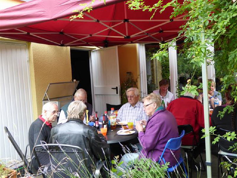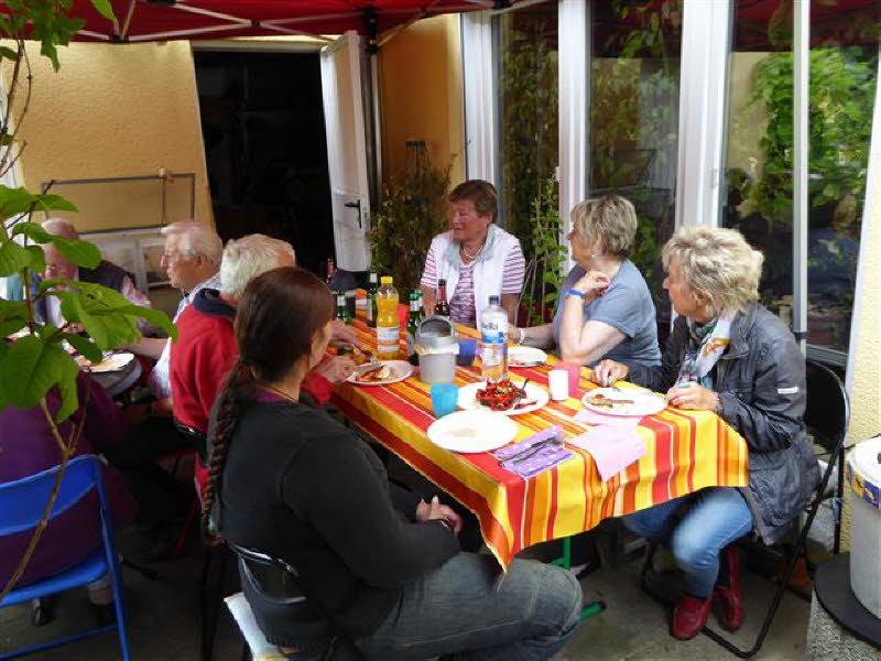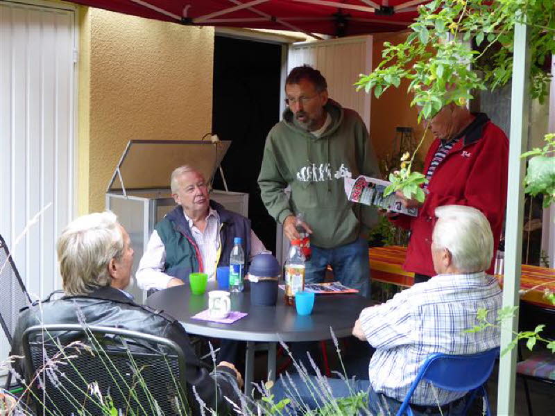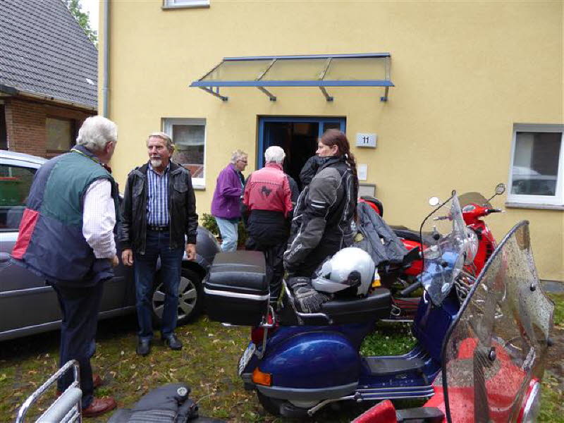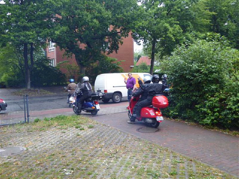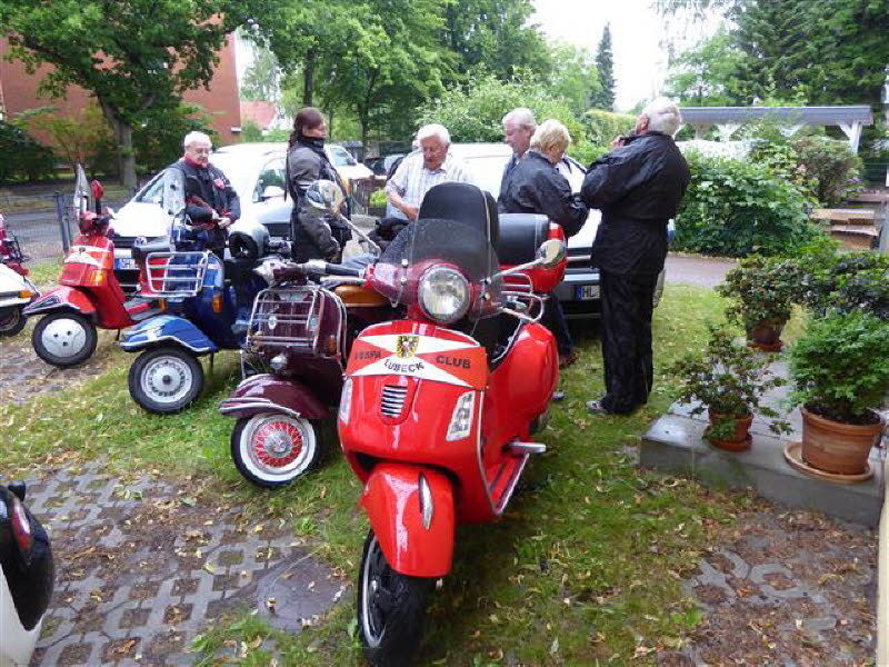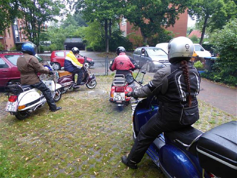 12 Personen mit 6 Rollern und 3 PKW kamen zu Cordelia und Gerd nach Hamburg. Zum Grillen war es noch trocken.