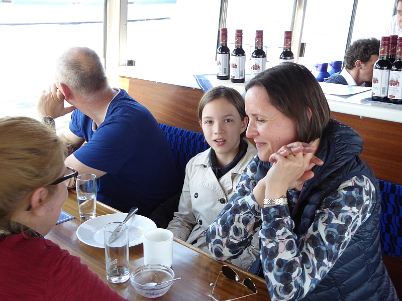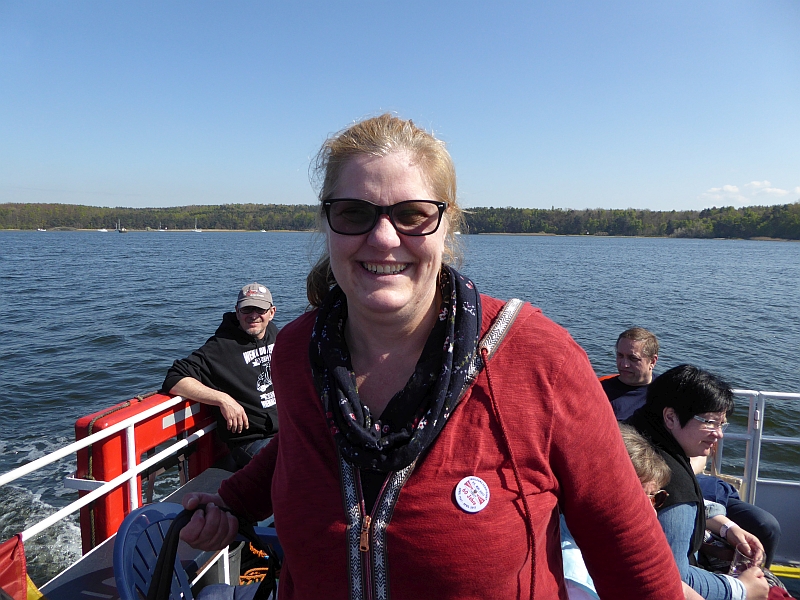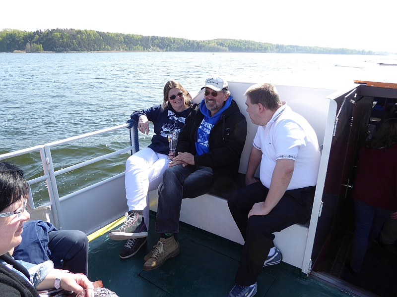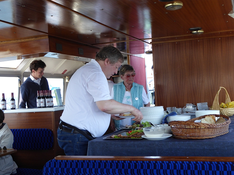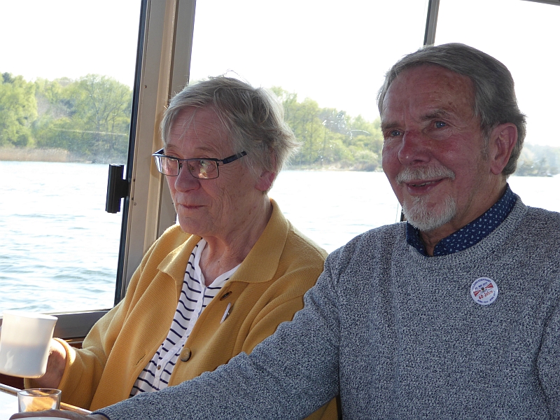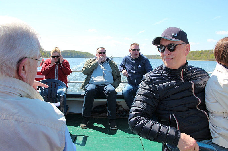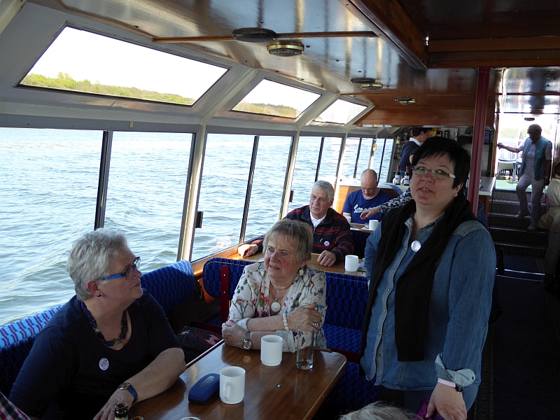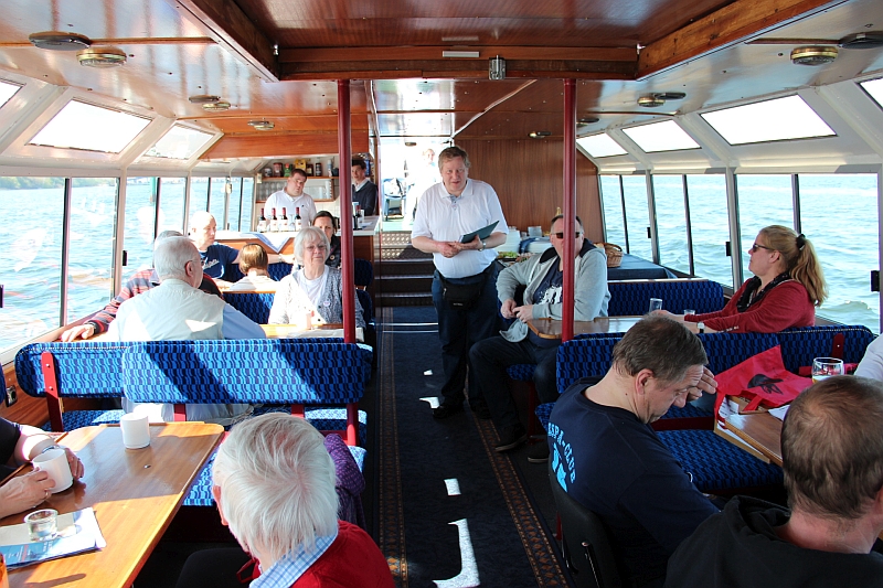 Alle anderen – inklusive Frank D. von der Bäderbande, die dieses Jahr auch 5-jähriges Bestehen feiert – haben aber die Fahrt zum Teil auf dem sonnigen Achterdeck sehr genossen. Auch die Grundausstattung an Beuteltaschen und Aufklebern anlässlich unseres 60-jährigen kam gut an (Mitglieder, die nicht dabei waren, mussten bis Juni warten). Bei den Schokolade-Täfelchen kamen einige ins Zweifeln, ob man sie lieber essen oder aufheben sollte. Sie schmecken ganz gut, und es wurde in Hinblick auf die VWD in Celle noch von allem eine Extraportion zum Verkauf gefertigt. Also guten Appetit