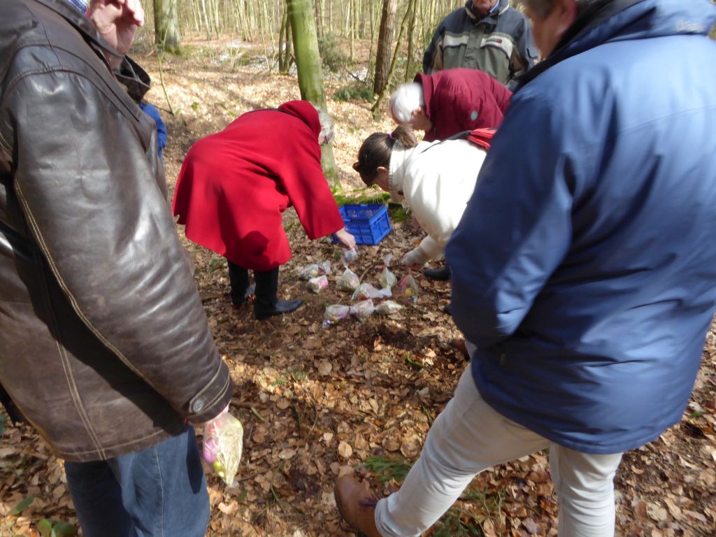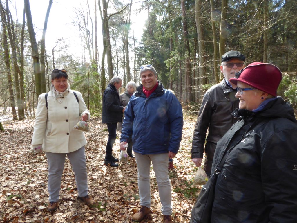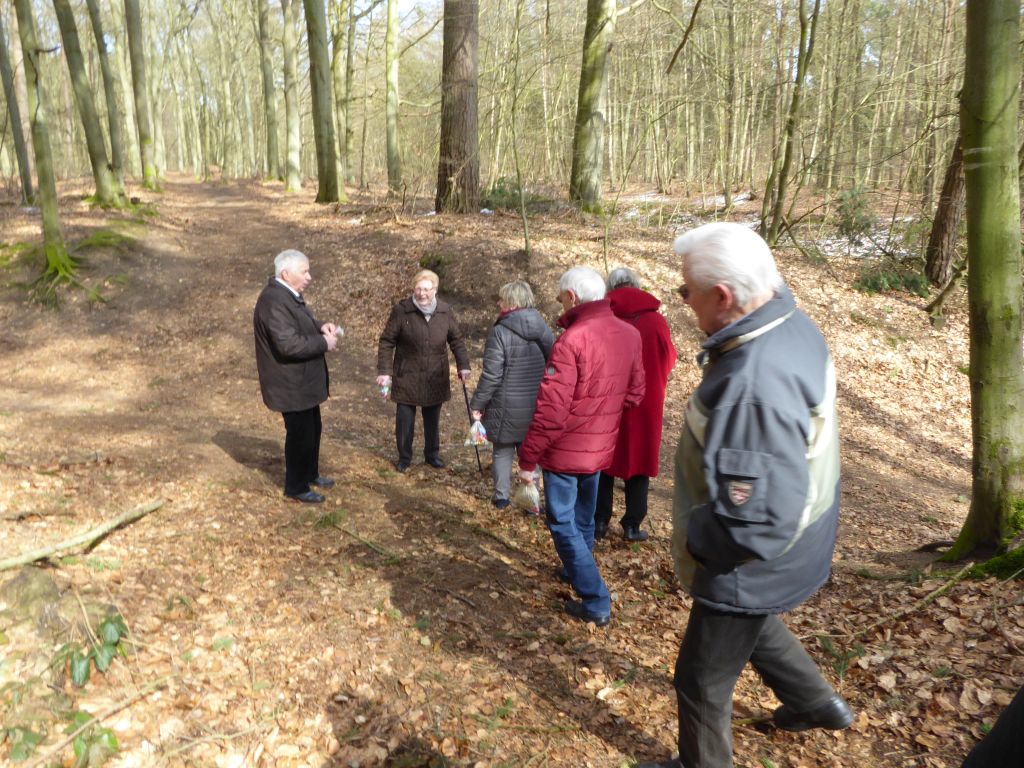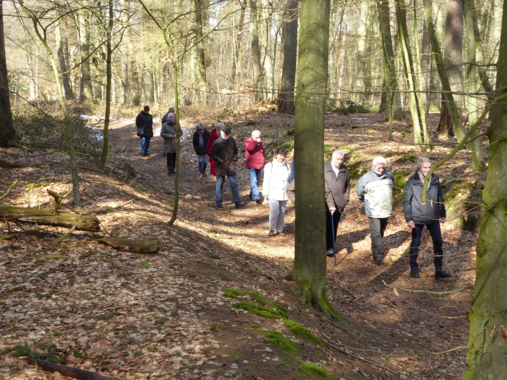 14 Leute trafen sich zum Spaziergang bei der Blücher Eiche. Das Wetter war freundlich, und es lag kein Schnee mehr. Der Boden war zwar hier und da noch etwas feucht, aber der Wald war trocken genug.