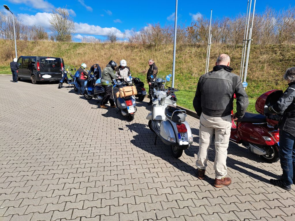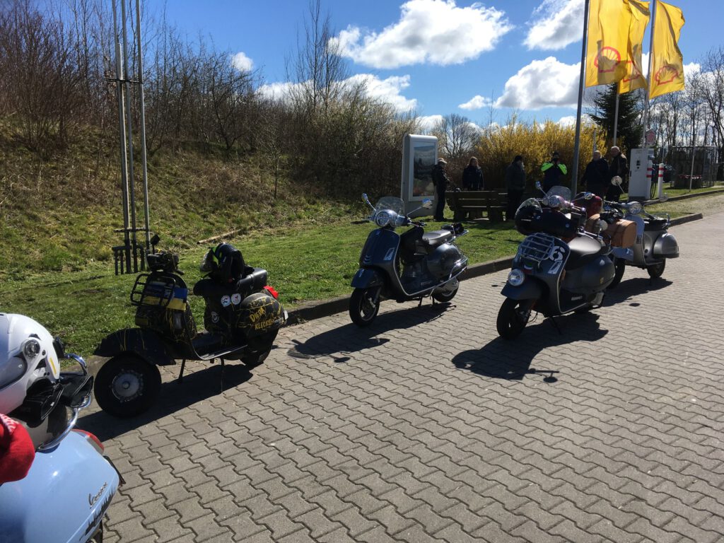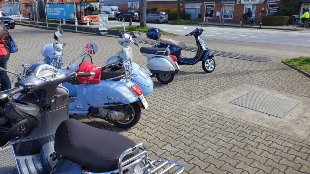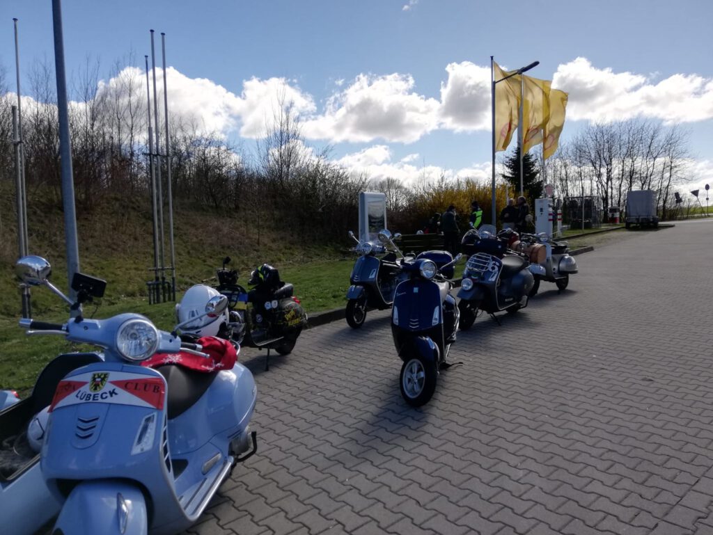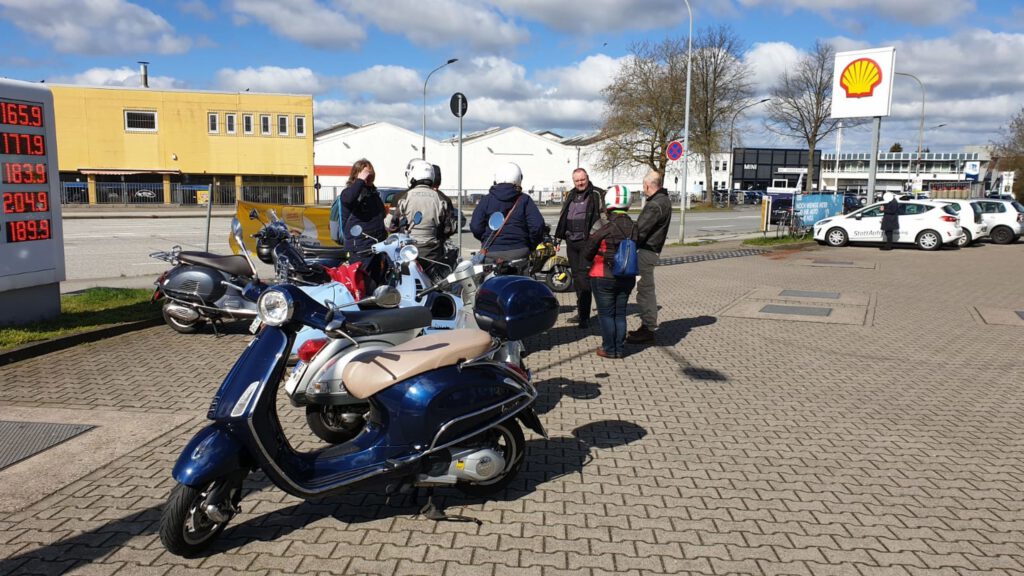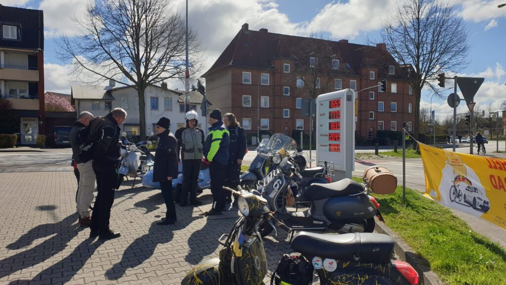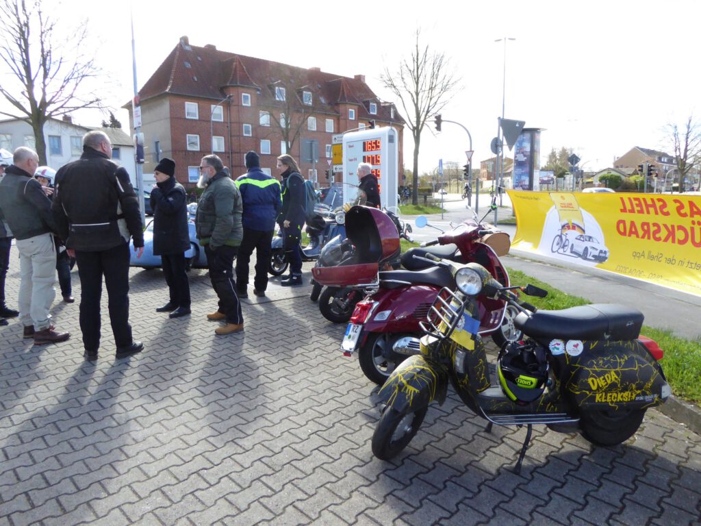 An dem Sonntag war wunderschönes Wetter, aber nach der klaren Nacht waren die Temperaturen nicht jedermanns Sache. Trotzdem fanden sich einige Roller zur Abfahrt an der Kronsforder Allee ein.