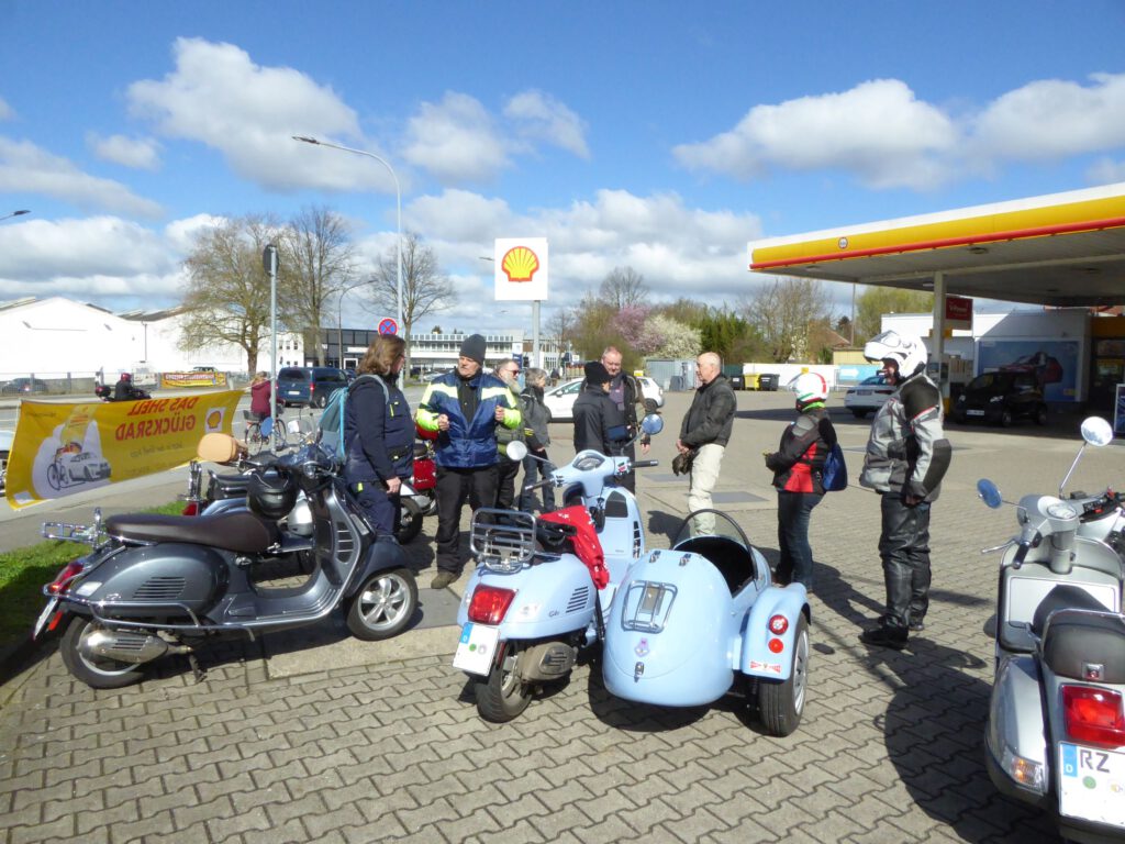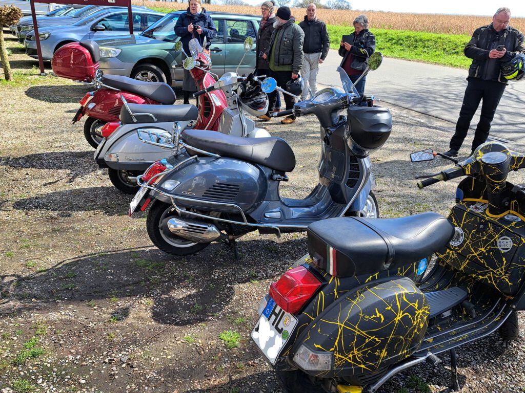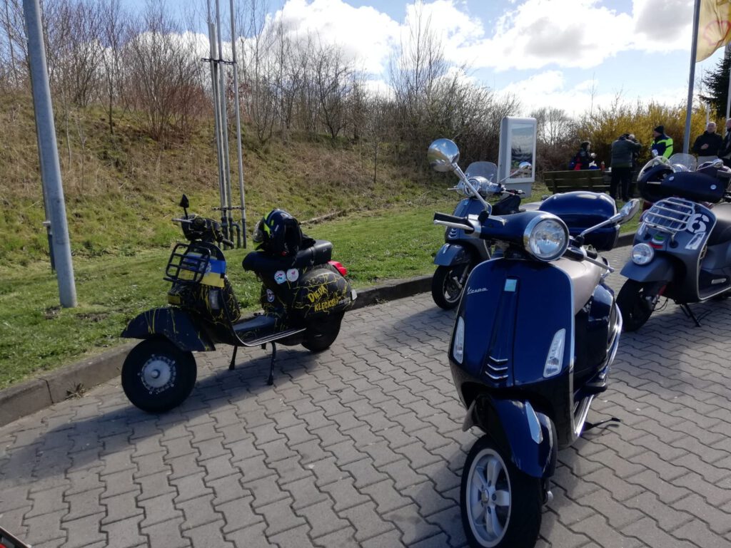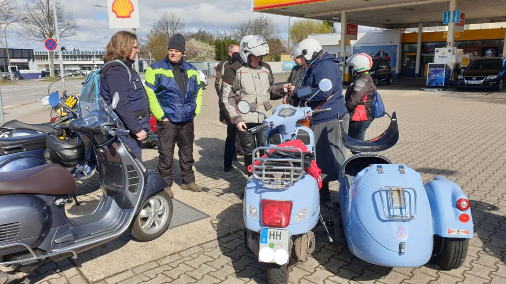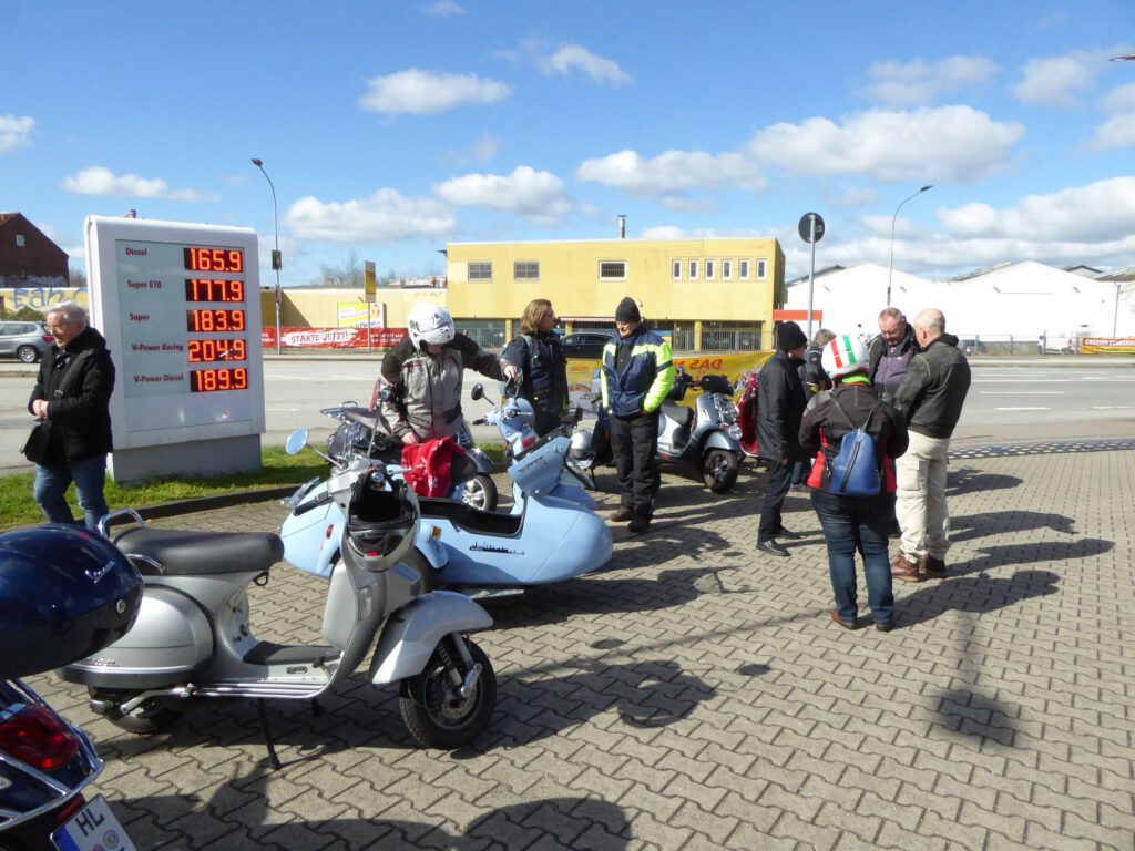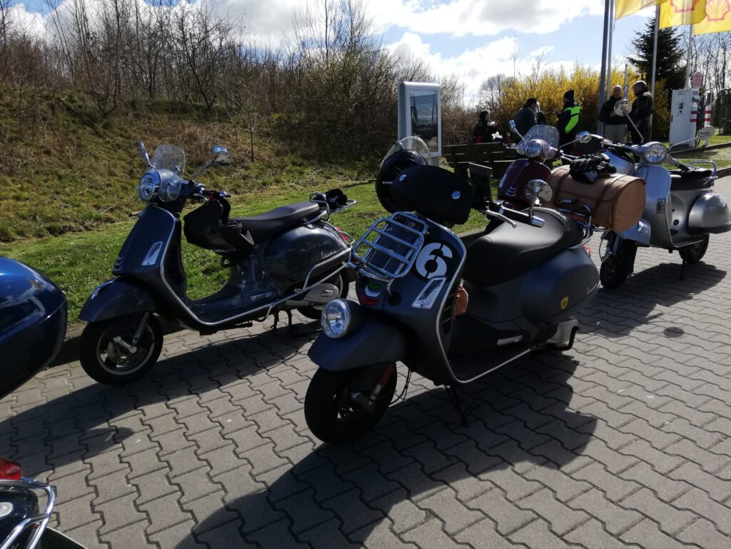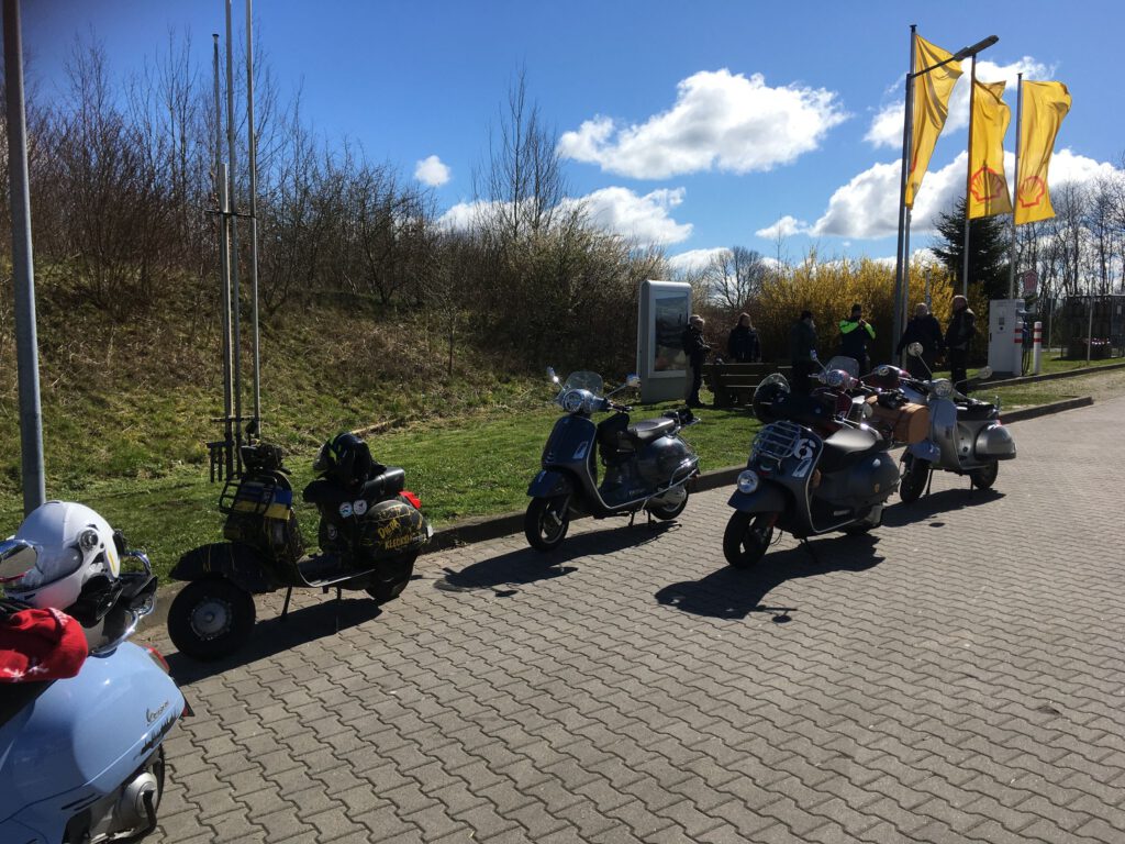 An dem Sonntag war wunderschönes Wetter, aber nach der klaren Nacht waren die Temperaturen nicht jedermanns Sache. Trotzdem fanden sich einige Roller zur Abfahrt an der Kronsforder Allee ein.