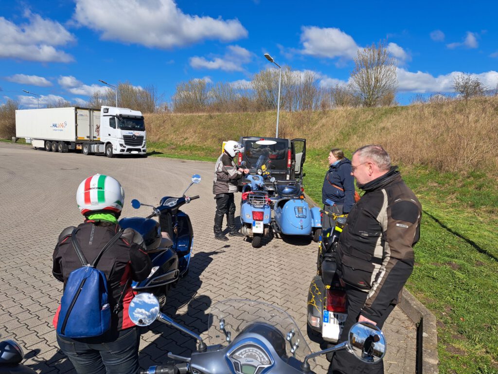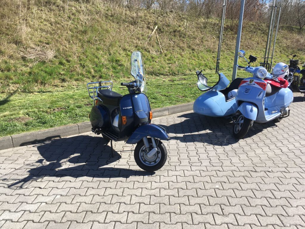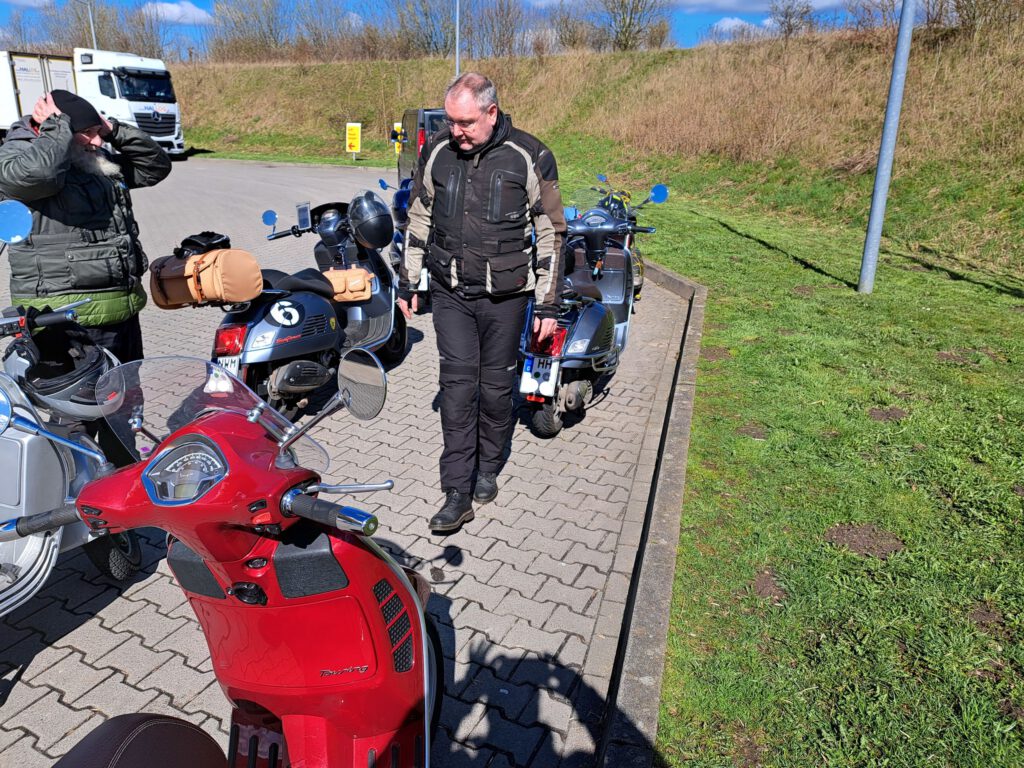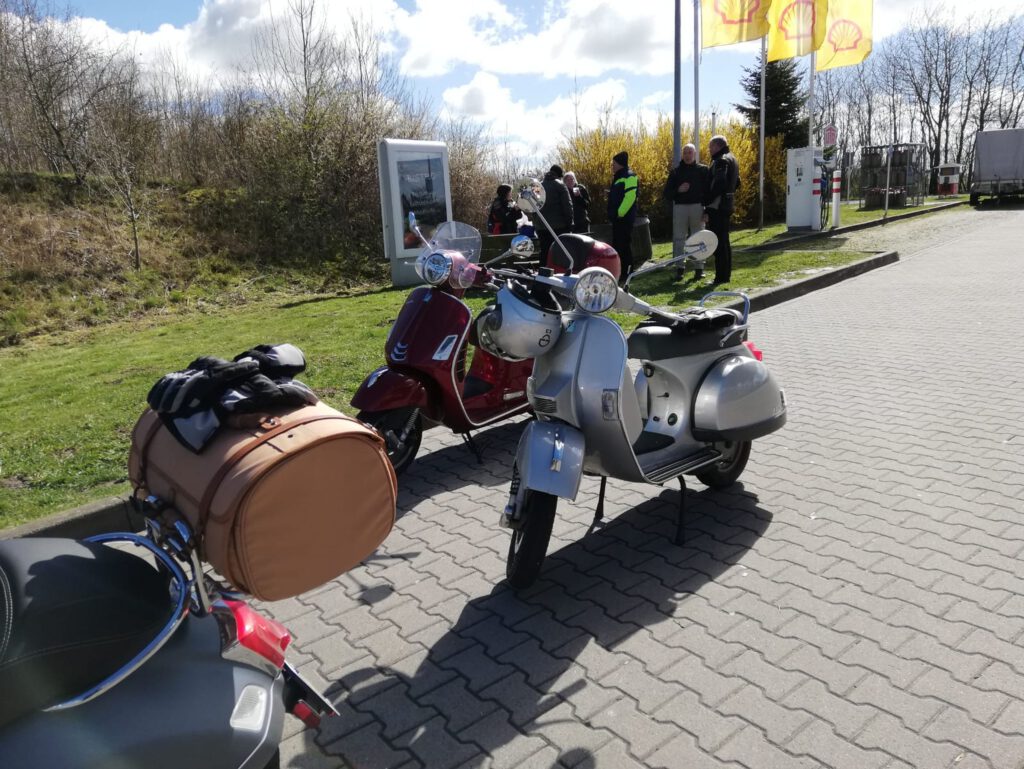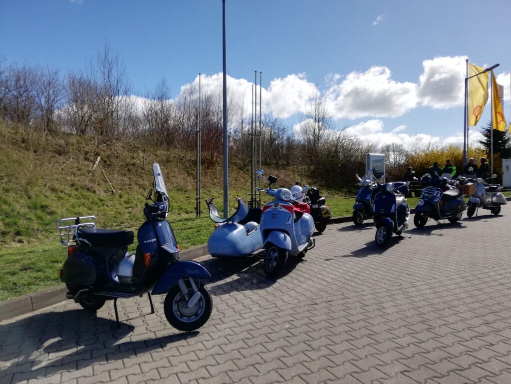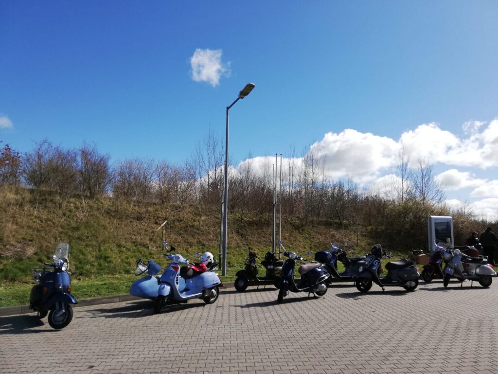 An dem Sonntag war wunderschönes Wetter, aber nach der klaren Nacht waren die Temperaturen nicht jedermanns Sache. Trotzdem fanden sich einige Roller zur Abfahrt an der Kronsforder Allee ein.