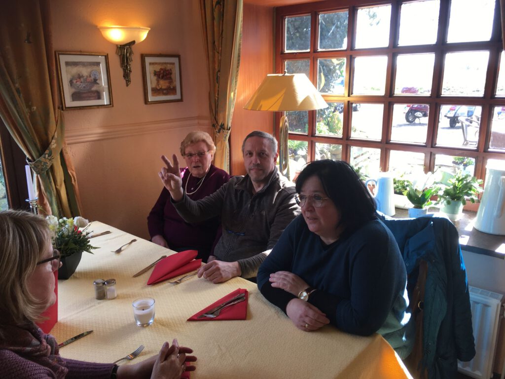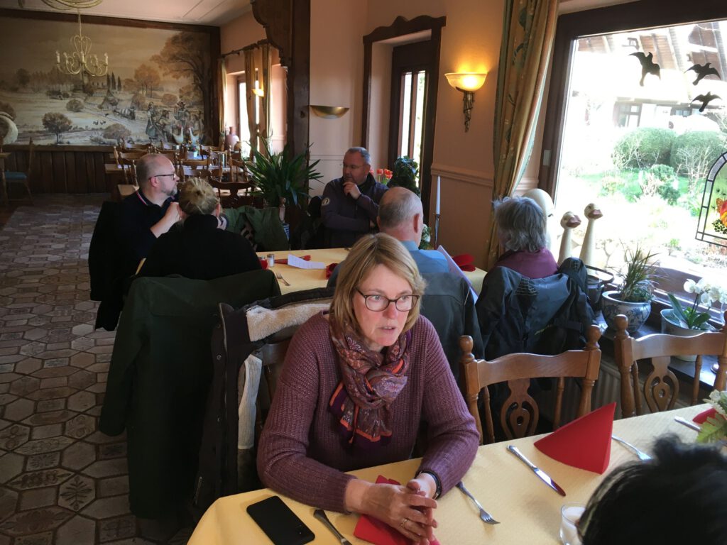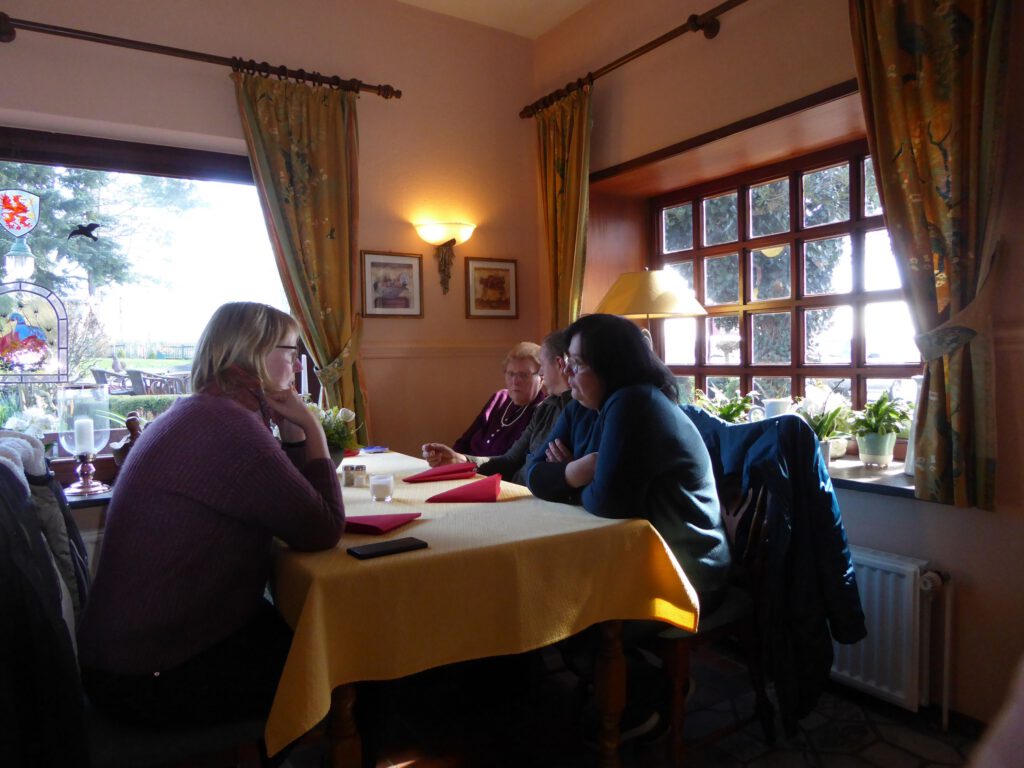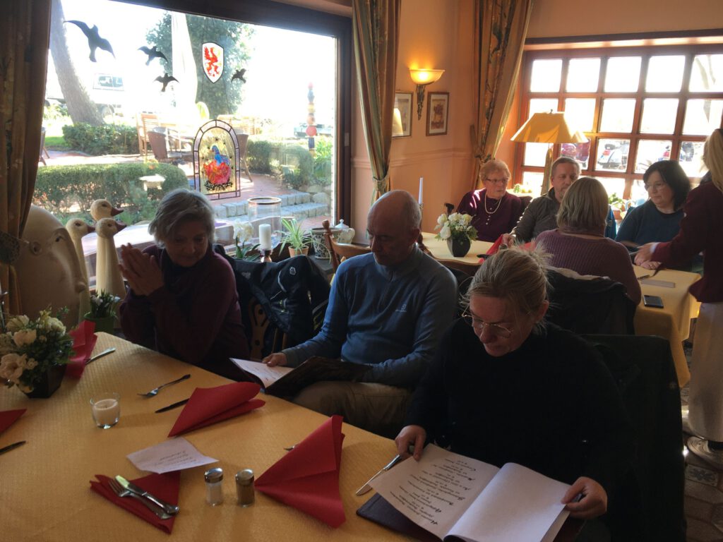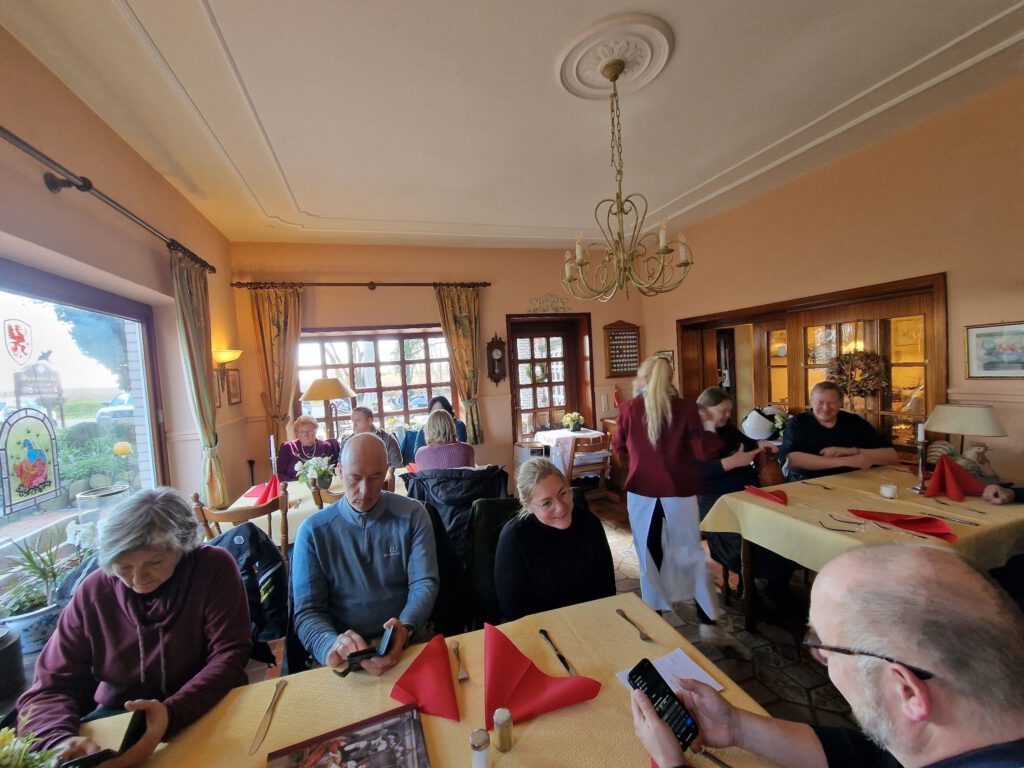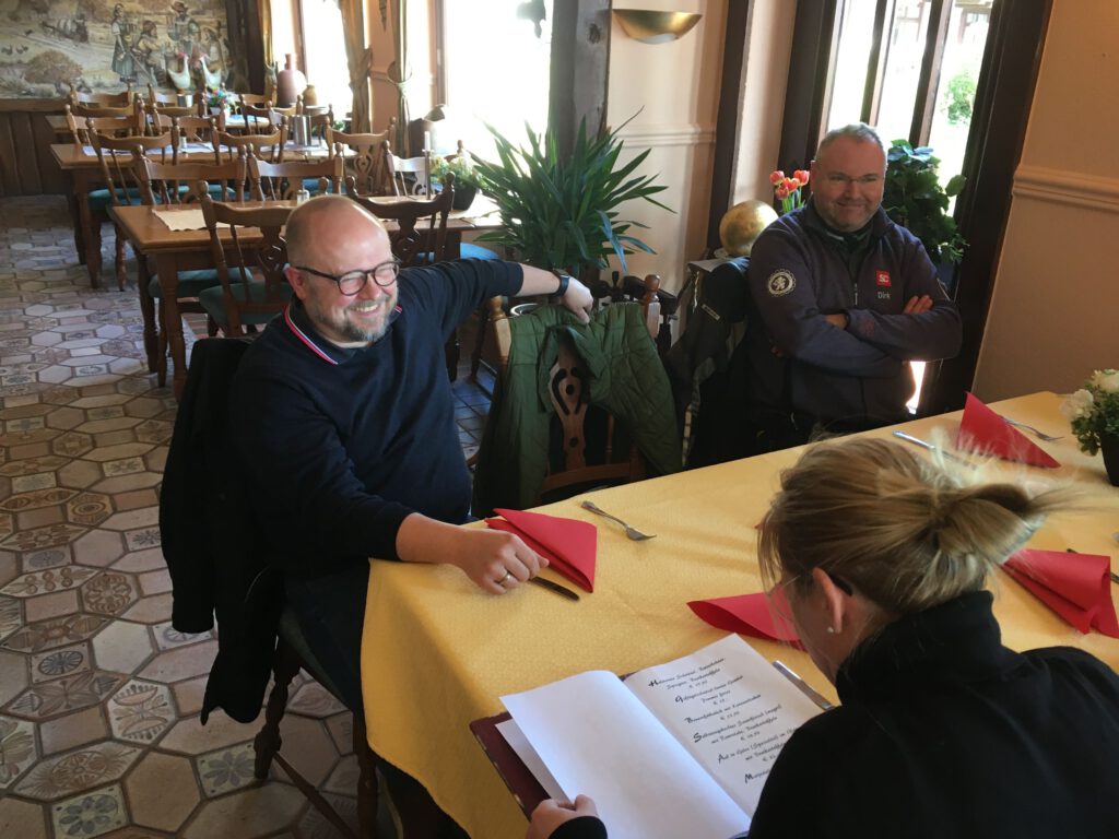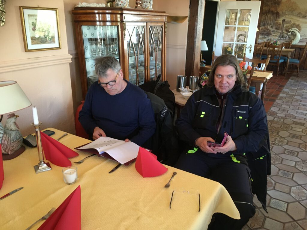 Darunter waren auch als Gäste Jo aus Rahlstedt und Roy aus Kaltenkirchen, der somit schon die weiteste und sicher kälteste Anfahrt hatte. Mit Roys originalem 80er waren wir tatsächlich nur ein kleines Bisschen langsamer unterwegs als sonst. Wir haben für die erste Etappe nicht die längste Route gewählt, sodass genug Zeit für eine Pause mit heissem Tee zum Aufwärmen blieb. Simone fuhr mit ihren Sommerhandschuhen lieber direkt in der Sonne nach Hause, als der Rest zur Runde um den Wardersee aufbrach. Von der Abkürzung zum Pronstorfer Krug machte niemand Gebrauch, sodass wir pünktlich gemeinsam mit den per Auto angereisten ankamen und uns lange sehr gemütlich unterhalten und gut verköstigen konnten.
