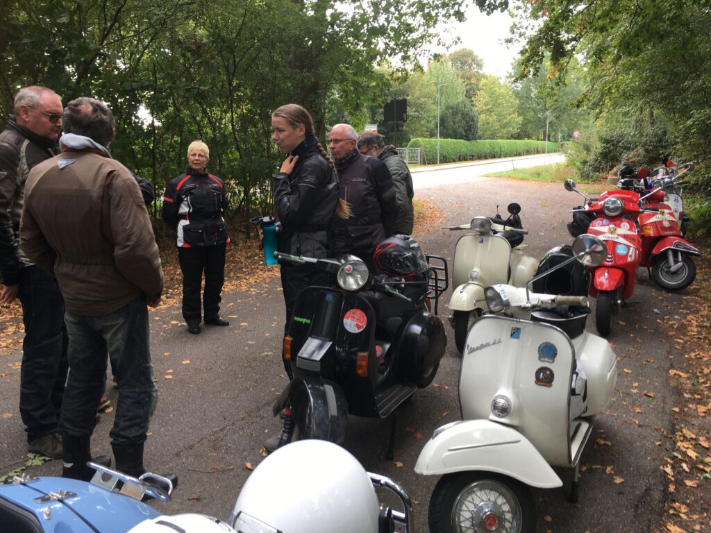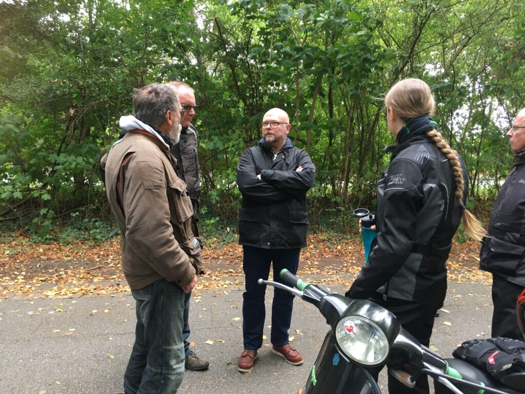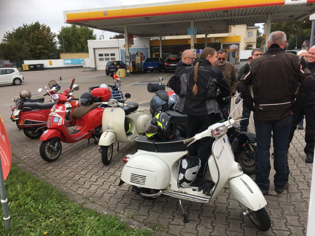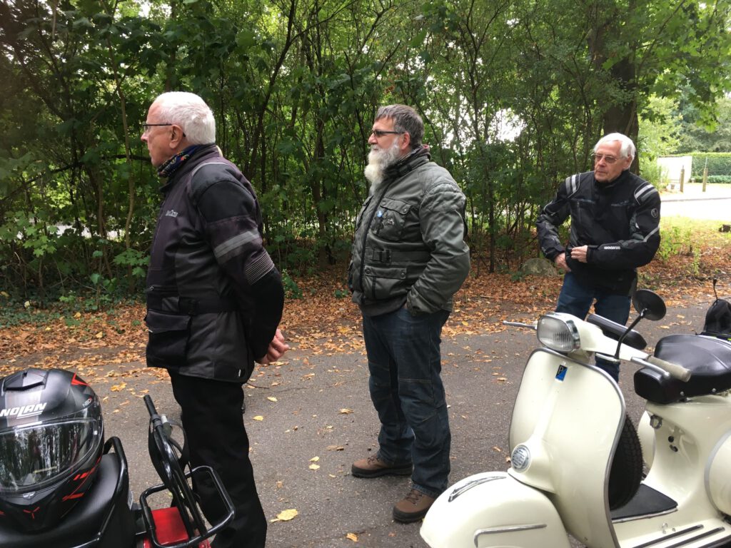 Punkt 12 starteten 9 Roller mit 11 Personen zu einer 70-km-Tour bei mildem Wetter mit gelegentlicher Sonne. Bei der kurzen Pause ging leider ein Paar Handschuhe verloren und war tatsächlich in kürzester Zeit vom Parkplatz „weggefunden“. Zum Glück waren es wohl recht betagte und Stefan hatte Ersatz dabei, sodass weder die Laune noch die Hände sehr leiden mussten.