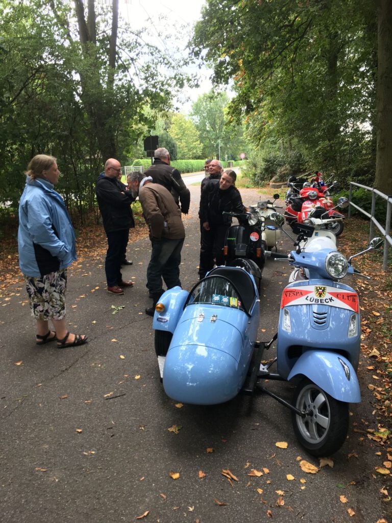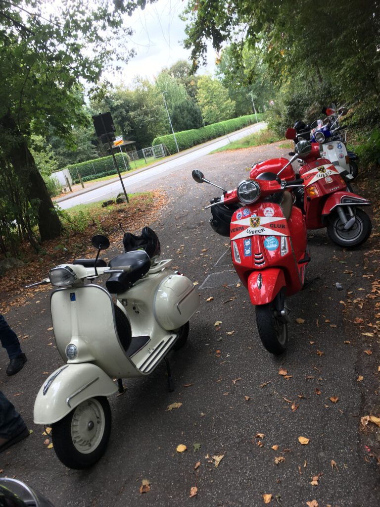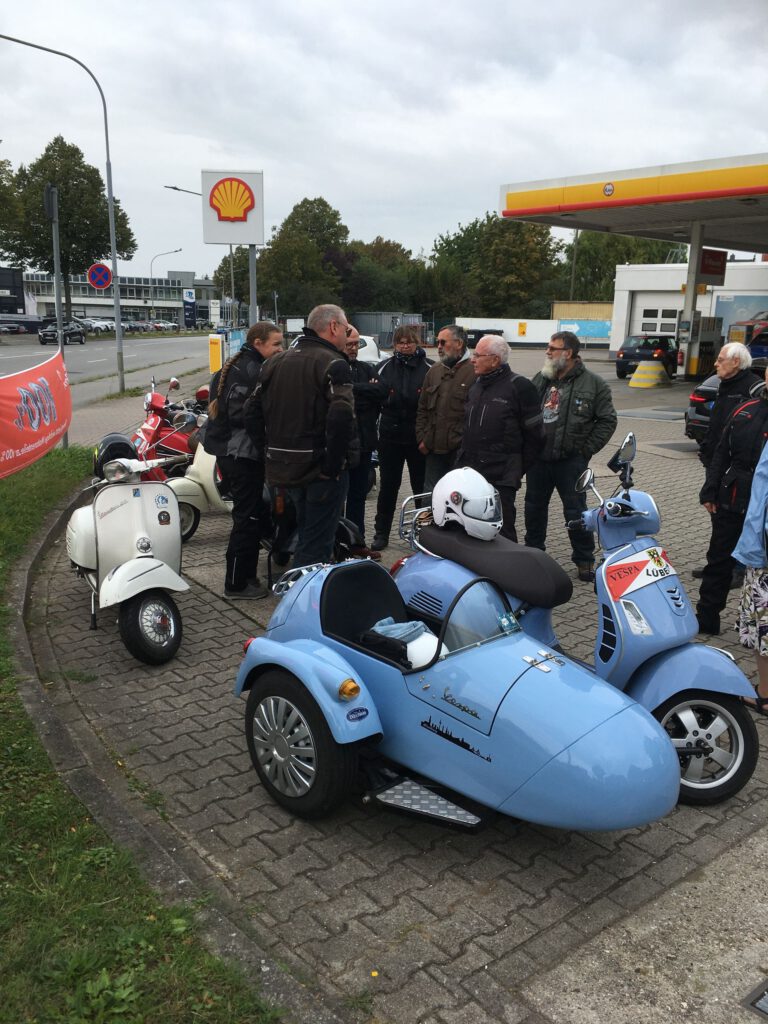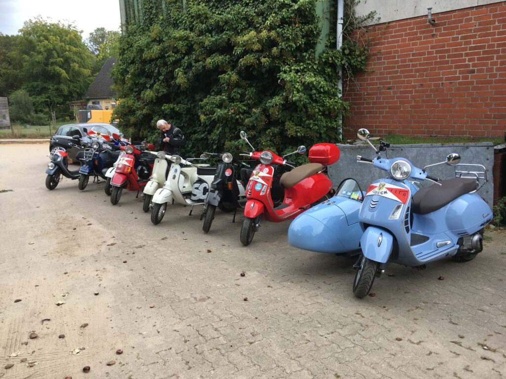 Punkt 12 starteten 9 Roller mit 11 Personen zu einer 70-km-Tour bei mildem Wetter mit gelegentlicher Sonne. Bei der kurzen Pause ging leider ein Paar Handschuhe verloren und war tatsächlich in kürzester Zeit vom Parkplatz „weggefunden“. Zum Glück waren es wohl recht betagte und Stefan hatte Ersatz dabei, sodass weder die Laune noch die Hände sehr leiden mussten.