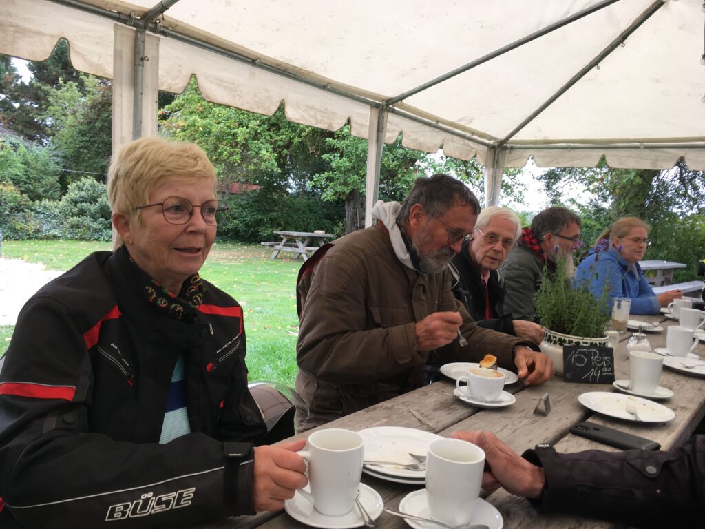 Bei Currywurst, Flammkuchen, Torten und viel Kaffee wurde sehr lange geklönt. Auch, weil gemütlich Regen fiel, bis wir um 16 Uhr trocken die Heimfahrt antraten.