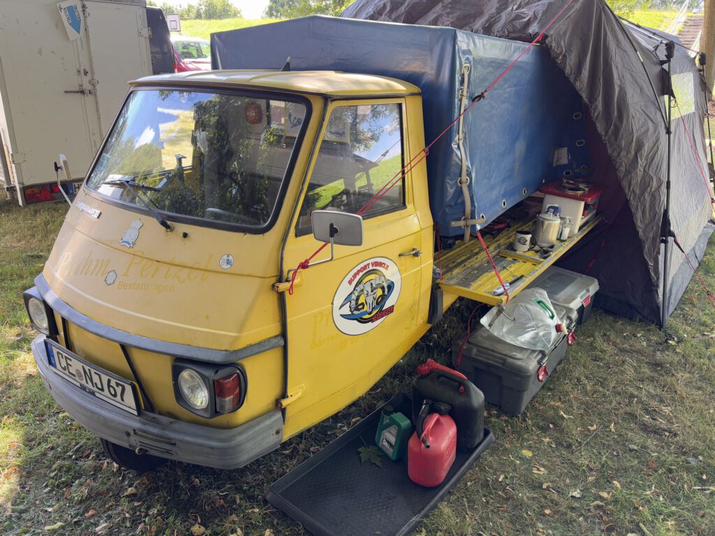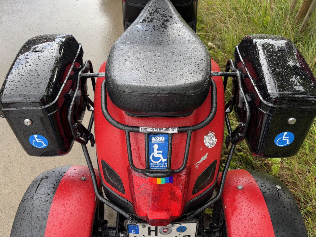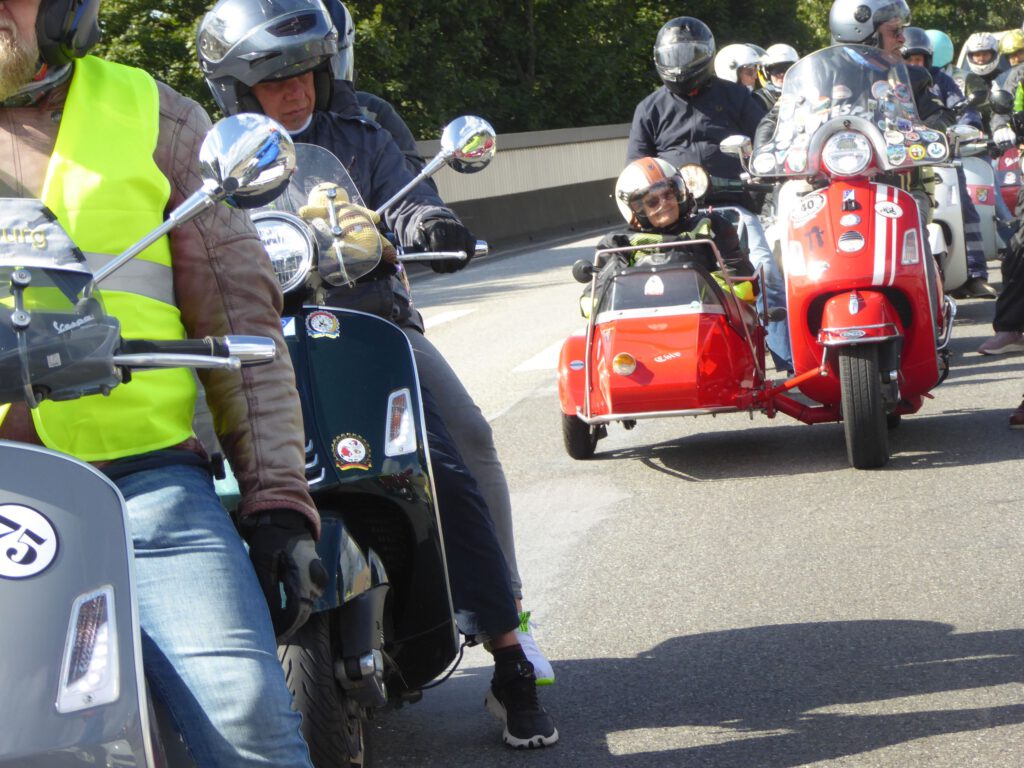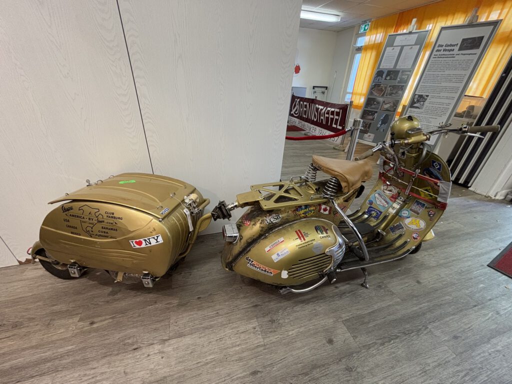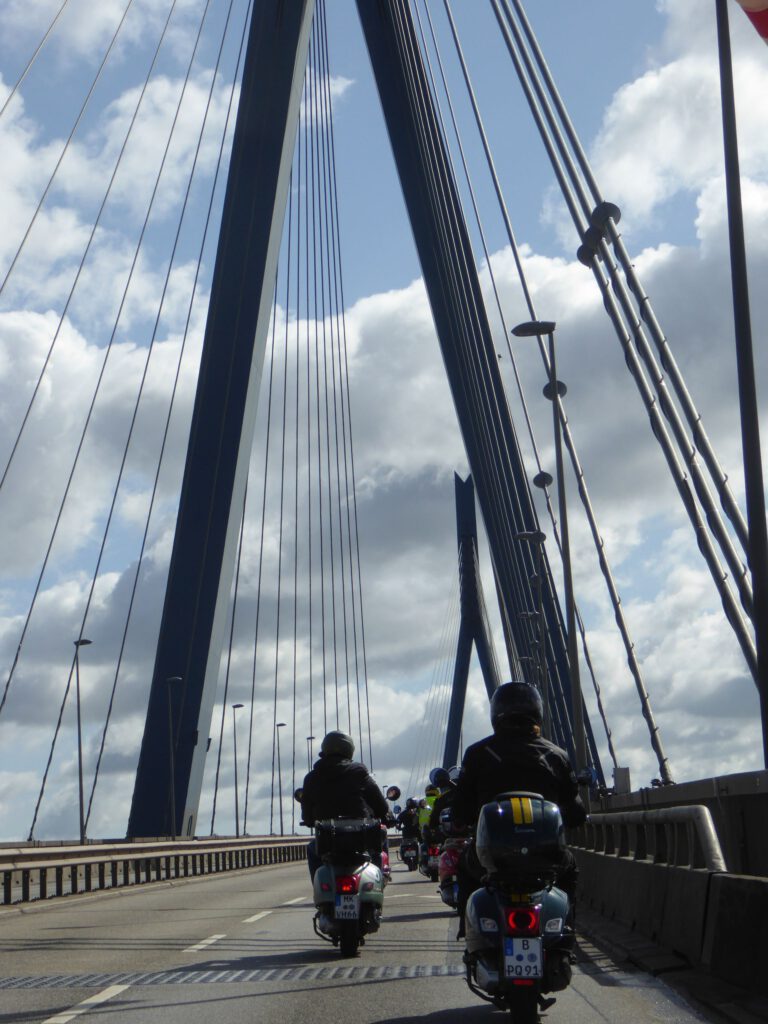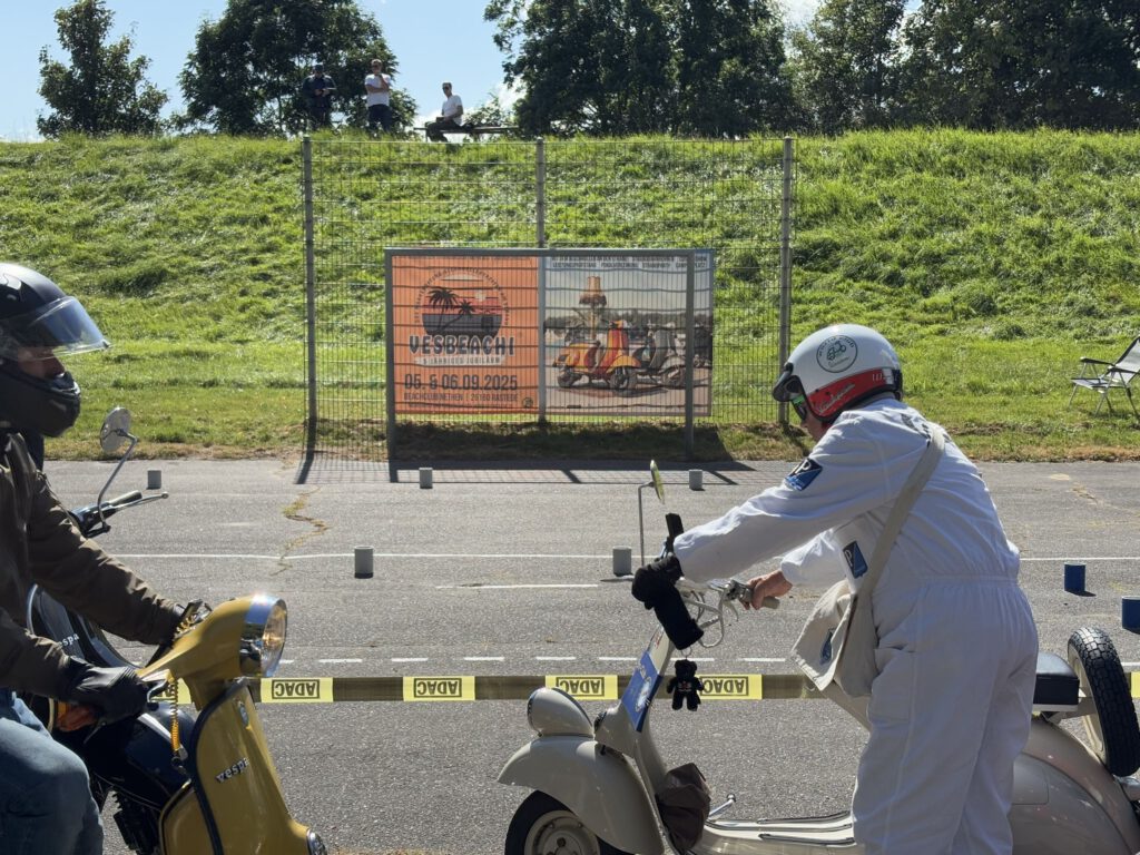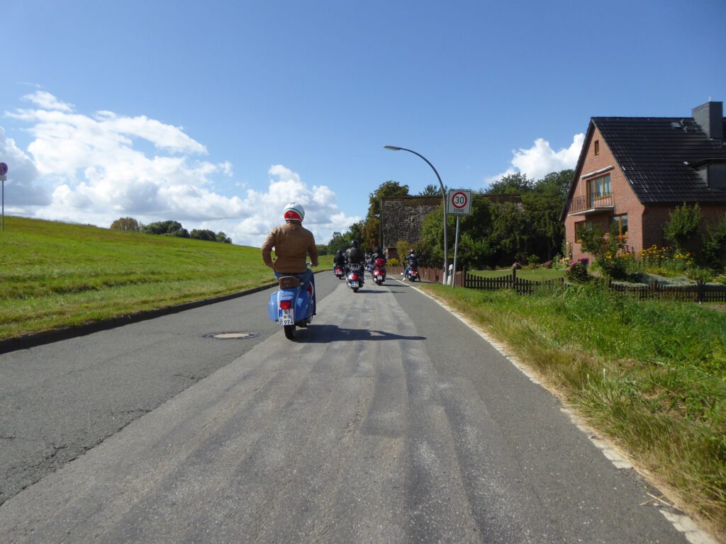 Einige von uns haben sich bei der Freiluftschule im Moorwerder Hauptdeich eingefunden, um mit dem VC Hamburg zu feiern. Das Gelände ist nicht nur schön gelegen, sondern bot gute Voraussetzungen mit Raum für eine Ausstellung, Geschicklichkeitsturnier etc. – bis dahin wusste ich nicht einmal, was eine Freiluftschule ist. Sogar ein Hallenbad stand zeitweise zur Verfügung, wurde aber leider kaum angenommen, weil das Wetter alle draußen hielt, wo es von der Elektro-PX über T-Shirt-Druck, Musik und Verköstigung viel zu bestaunen und zu genießen gab. Besondere Highlights waren auch die Ausfahrten, die Cordelia und mich zur passenden Zeit (Sonnenuntergang) an schöne Orte geführt haben, die auch wir als Hamburg-Bewohner nicht alle kannten. Pfiffig war die Corso-Fahrt, die als Demonstration für mehr Sicherheit im Straßenverkehr angemeldet war, und daher Begleitung von Polizei-Motorrädern hatte. Der NDR zeigte dann auch Bilder vom Treffen und der „Demo“. Die Motorrad-Polizisten haben sich nach dem Corso noch am Parcours versucht und sich mit den ausgeliehenen Rollern gut geschlagen.
